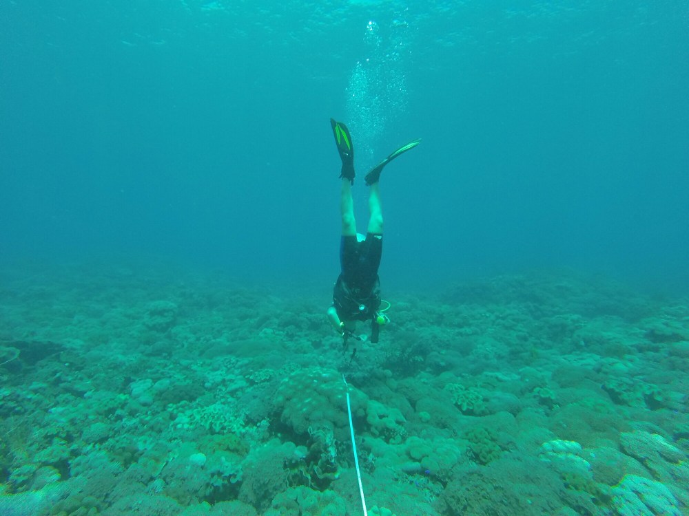 A total of 8 dives this week. Simone, Adam and I – a.k.a. The Benthic Bosses – passed our identification tests and started doing practice PIT’s. Let’s not go into to much detail, but: a PIT is the method for data collection that we’ll start using soon. You roll out a transact tape and identify the species of coral at every 20 cm. Amazing buoyancy skills: needed! What it comes down to is that we’ve been laying out the tape and been spending a lot of time diving up-side-down. It’s hard and challenging, but that also makes it fun.